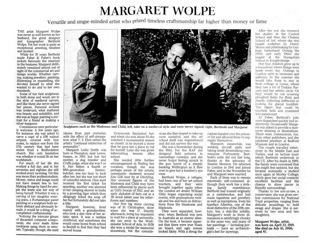 Here is some of Margaret Wolpe’s work, courtesy of Deborah Hopson-Wolpe:
